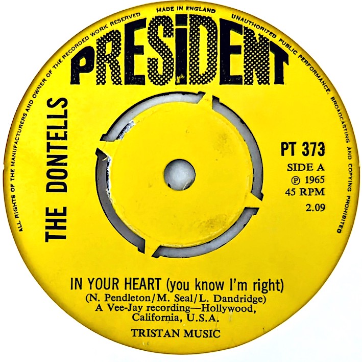 The Dontells – Nathaniel Pendleton, Leroy Dandridge, Larry Nestor and Willie Weems hailed from Chicago where they recorded for Vee Jay. This UK issue on President is in fine condition and plays really well.