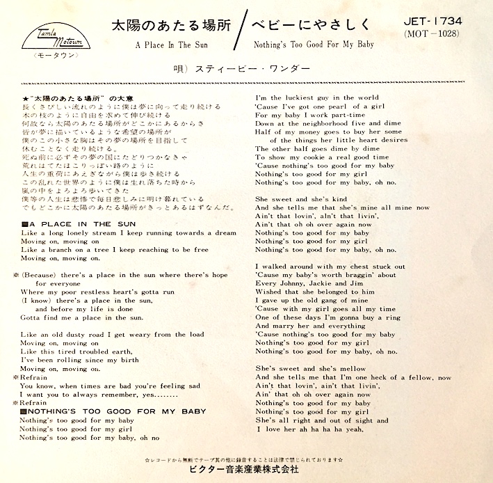 Japanese Motown in fine condition, with the usual inner sleeve and lyric sheet.