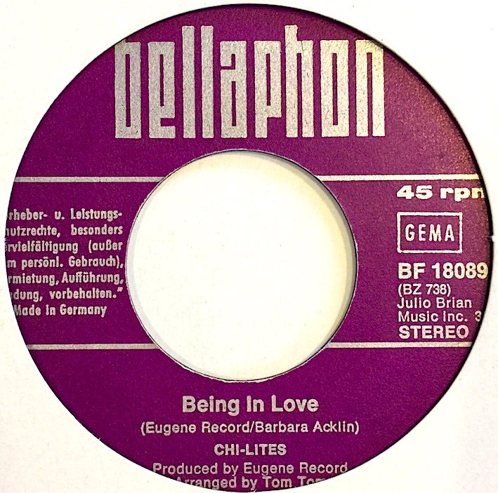 The flip side Being In Love is a great sweet soul song written by Eugene Record and Barbara Acklin.