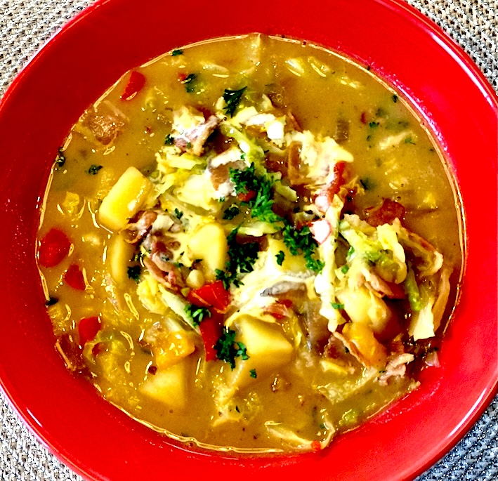Cabbage soup is ideal if you’re trying to lose some weight. However, some of us find it too bland, so we have added some chopped lardons to make it more flavoursome.